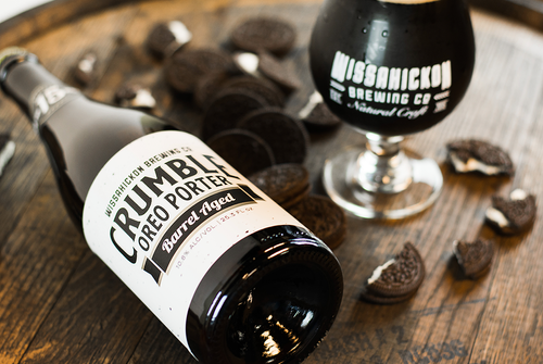 Brand & Label Design for Wissahickon Brewing Company’s Crumble Oreo Porter. This Label features spot-metallic show-throughs and black speckles to drive home the crushed cookie concept. Complete with neck label highlighting time spent aging in bourbon barrels. And yes, Carolyn Barton, Luke Gill, and I all had a blast during this photoshoot.